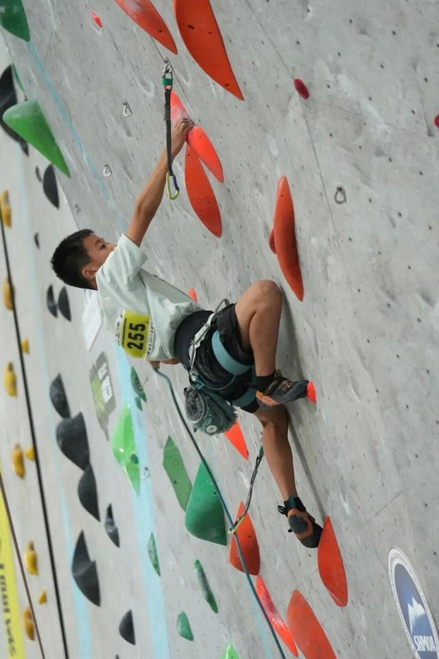 比赛现场,小选手们化身“岩壁蜘蛛侠”,在垂直的岩壁上灵活攀爬,每一次抓点、跳跃都扣人心弦。难度赛中,选手们需要解读复杂线路,凭借精湛技巧与强大耐力向上攀登;速度赛则是一场爆发力的较量,选手们在规定赛道上飞速攀爬,挑战速度极限,紧张刺激的场面让现场观众欢呼不断。