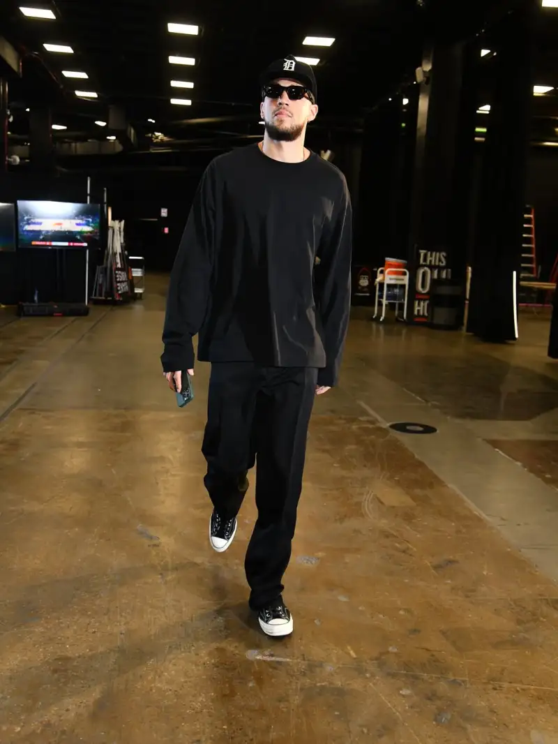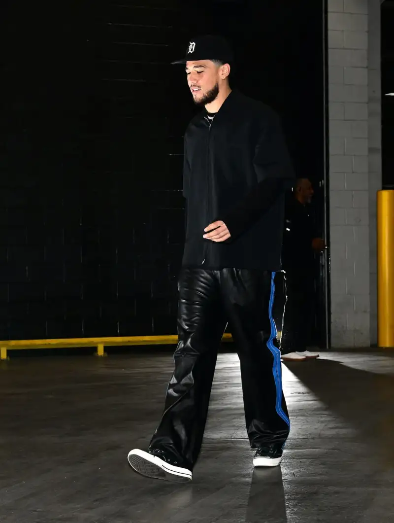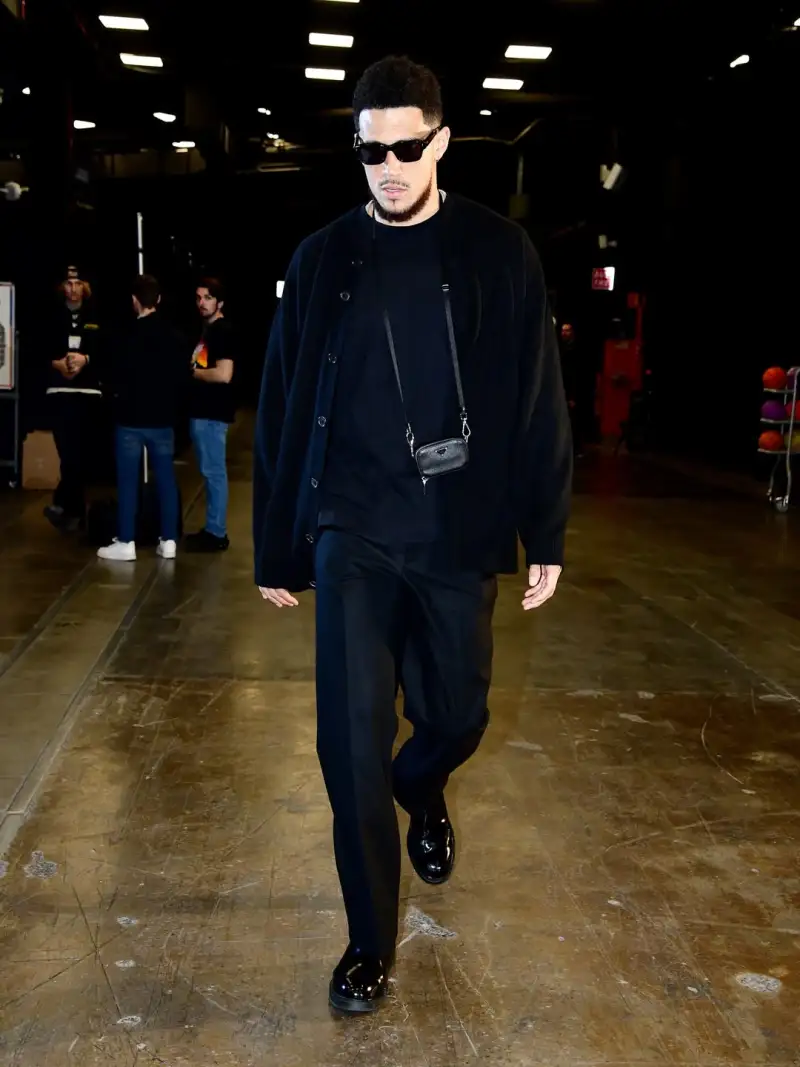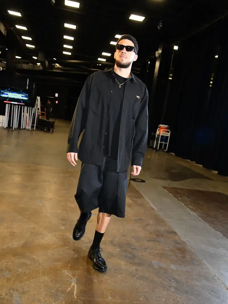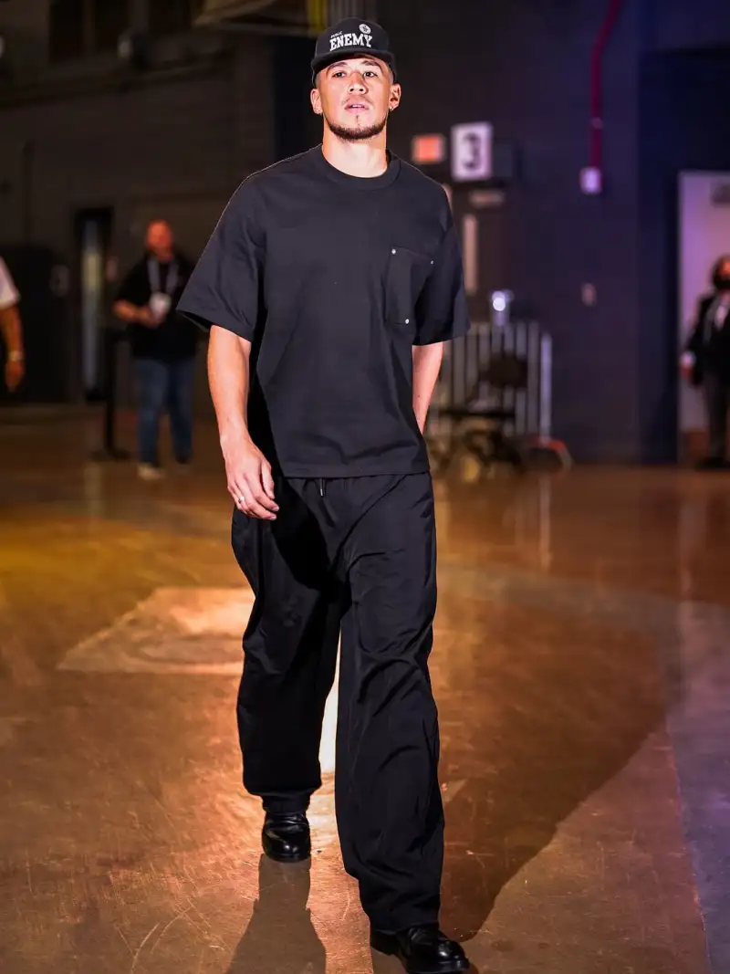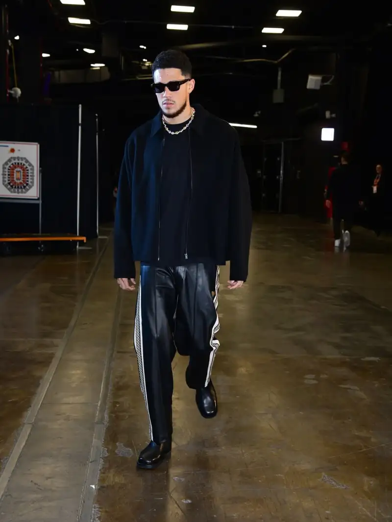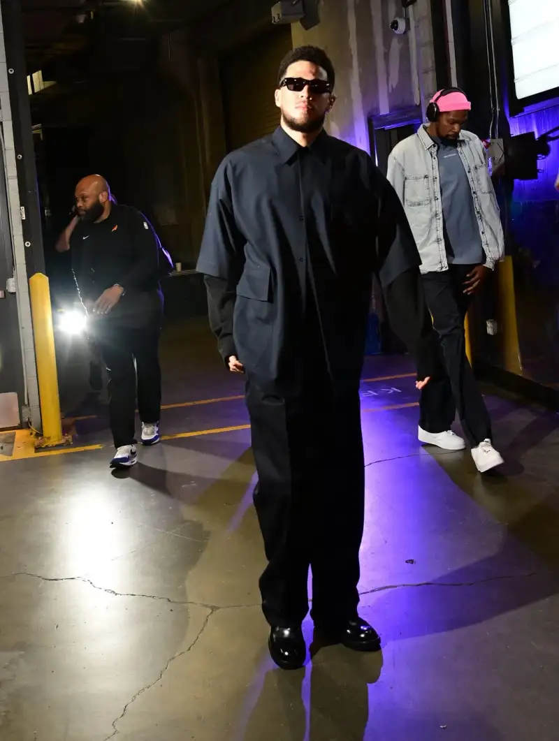 开云官网-暗夜型男!外媒回顾布克穿搭黑色元素的场外照片