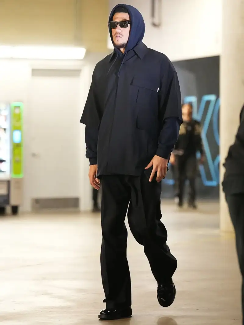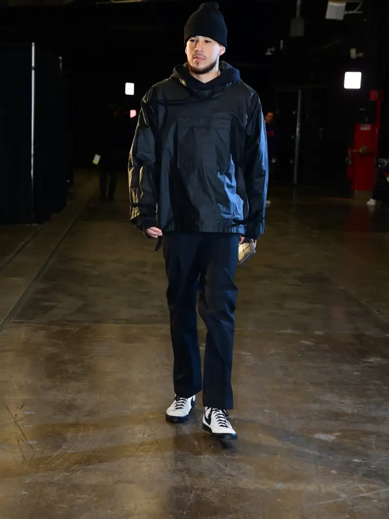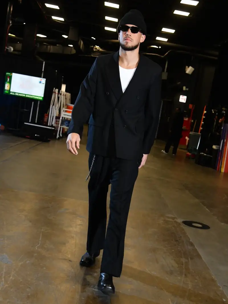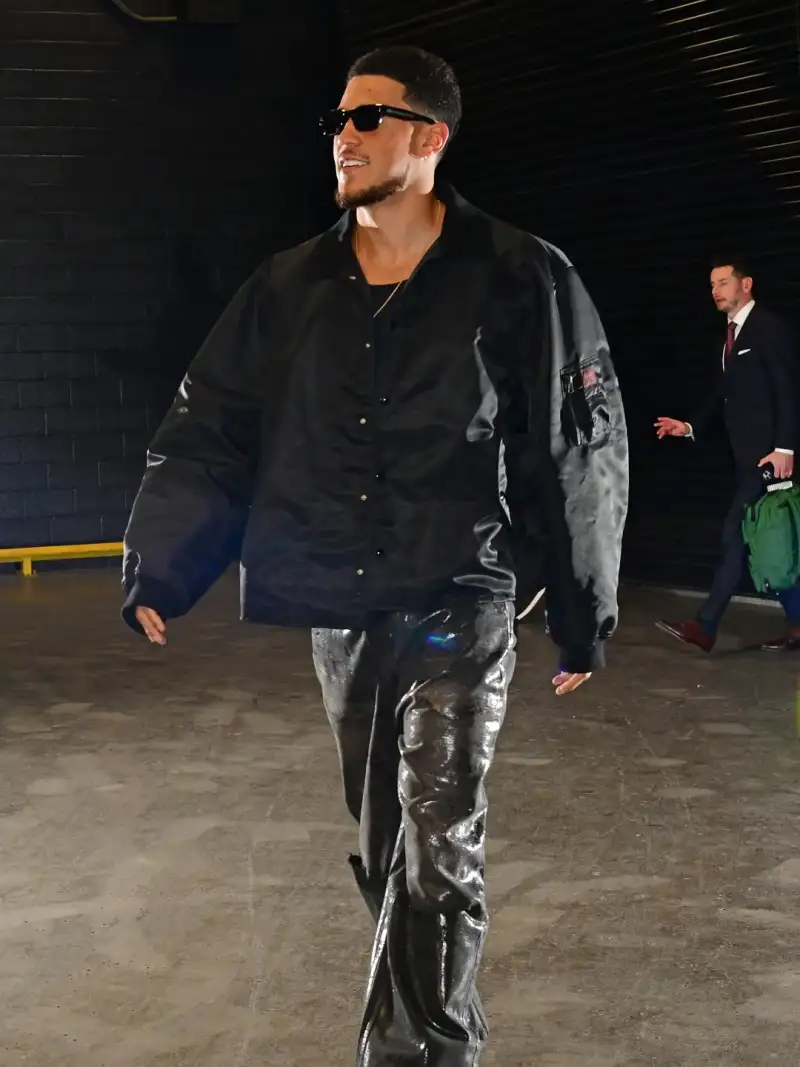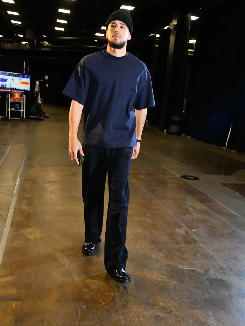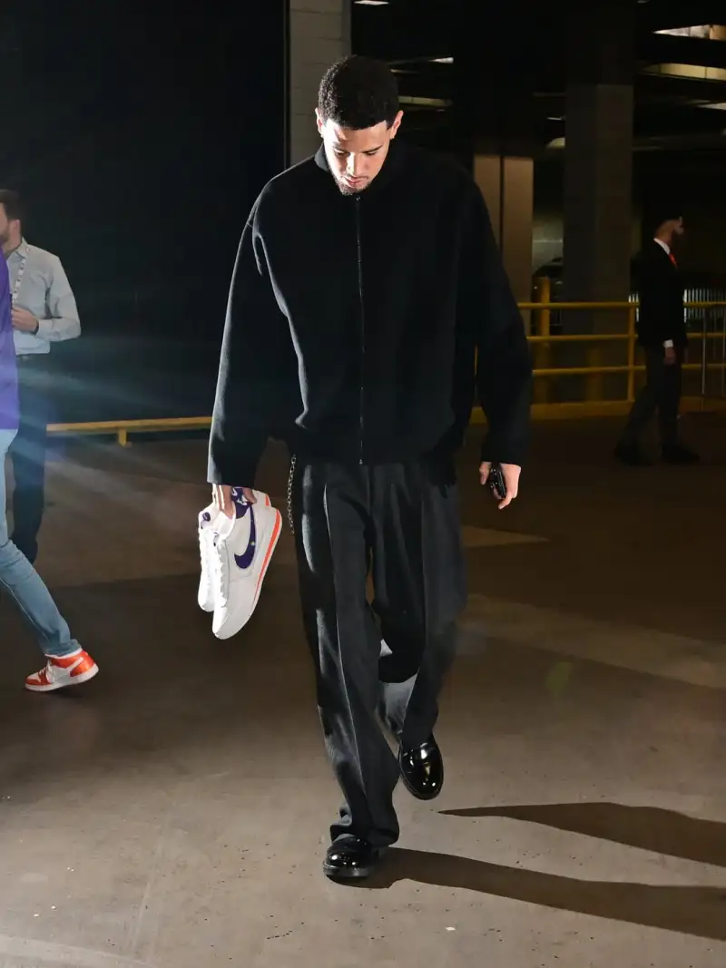开云官网-暗夜型男!外媒回顾布克穿搭黑色元素的场外照片